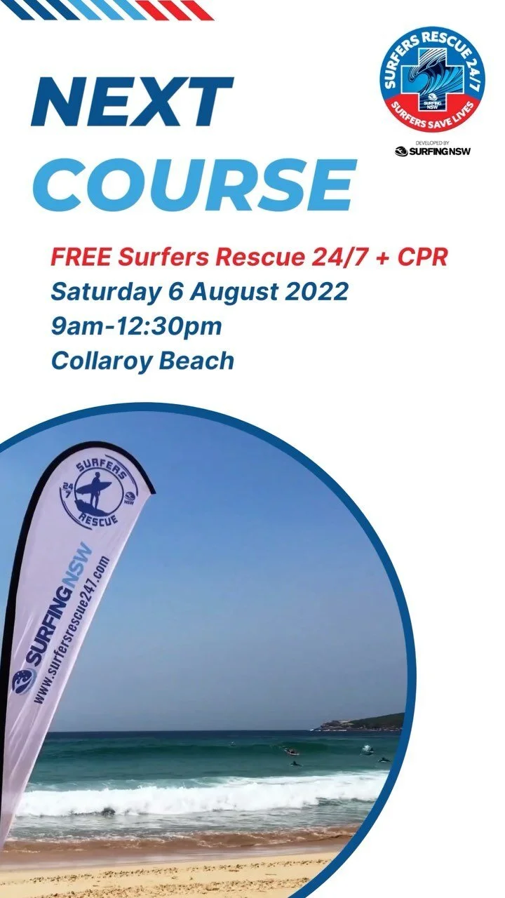 Surfing NSW, with the support of the NSW Government, is giving all surfers in NSW the opportunity to do a CPR and board rescue course – “Surfers Rescue 24/7”.